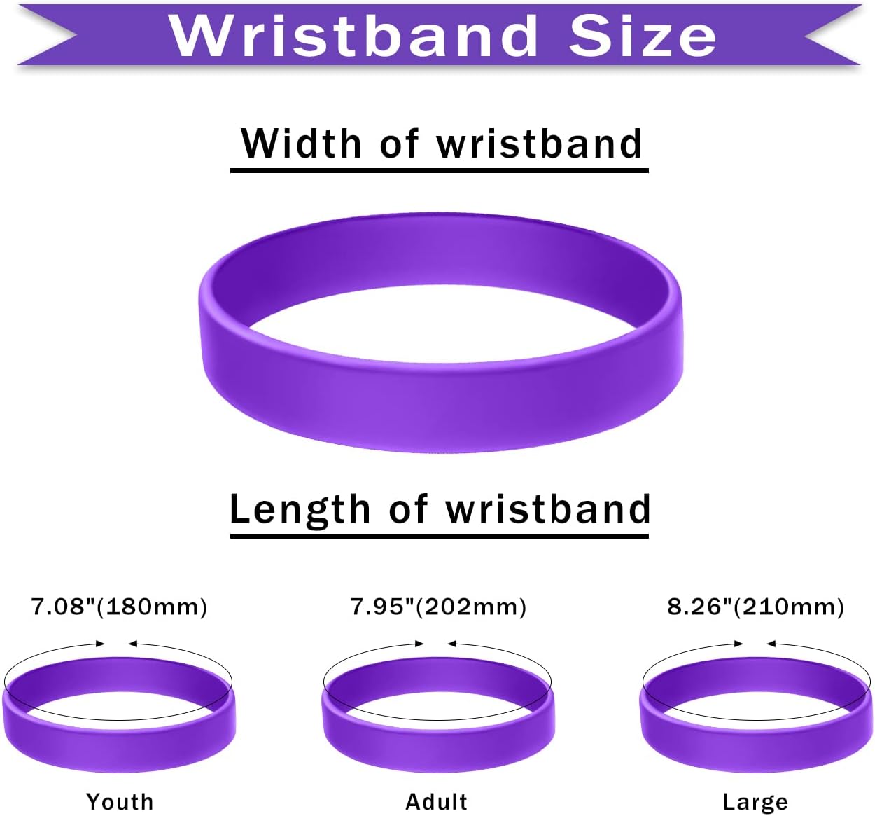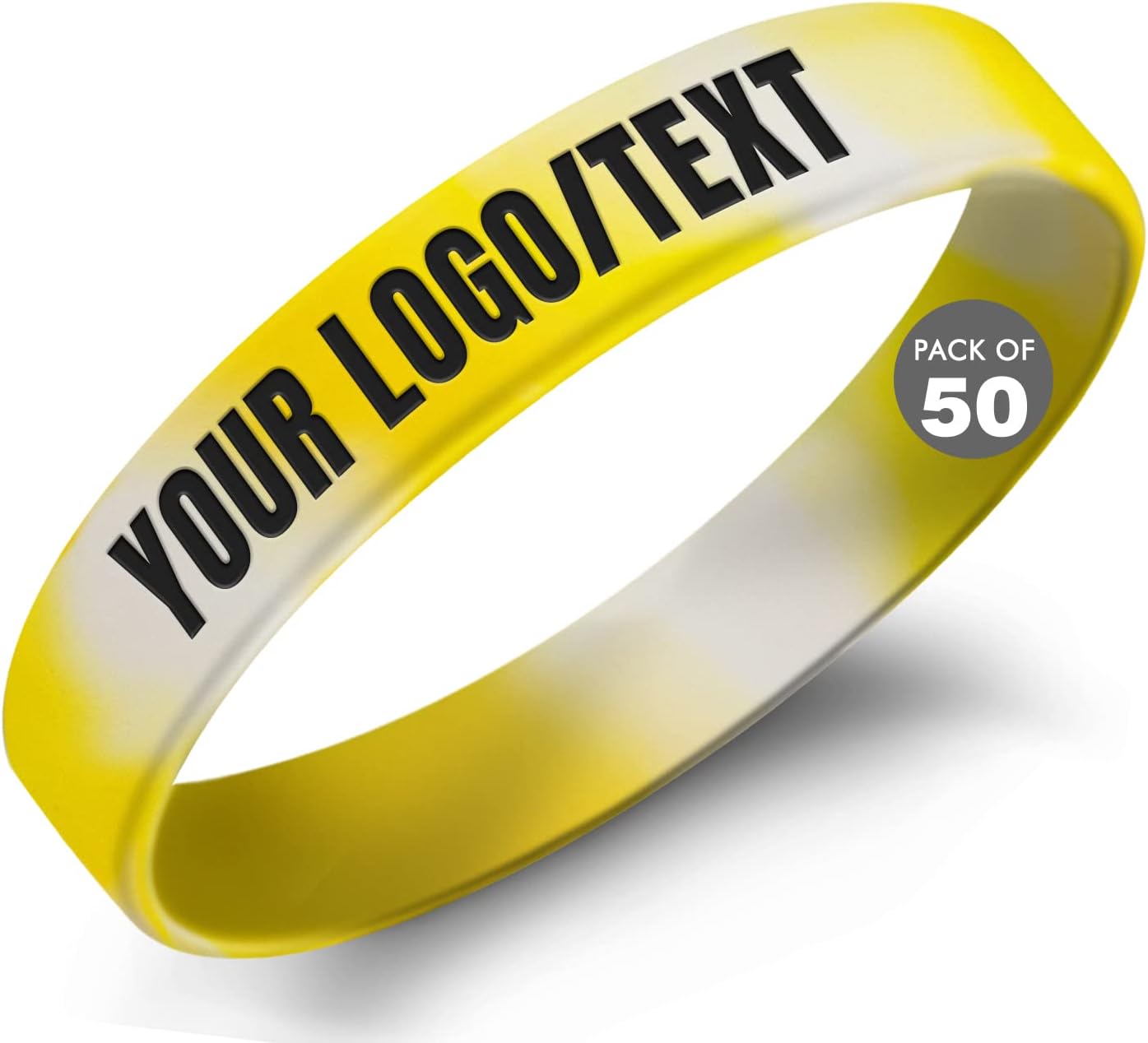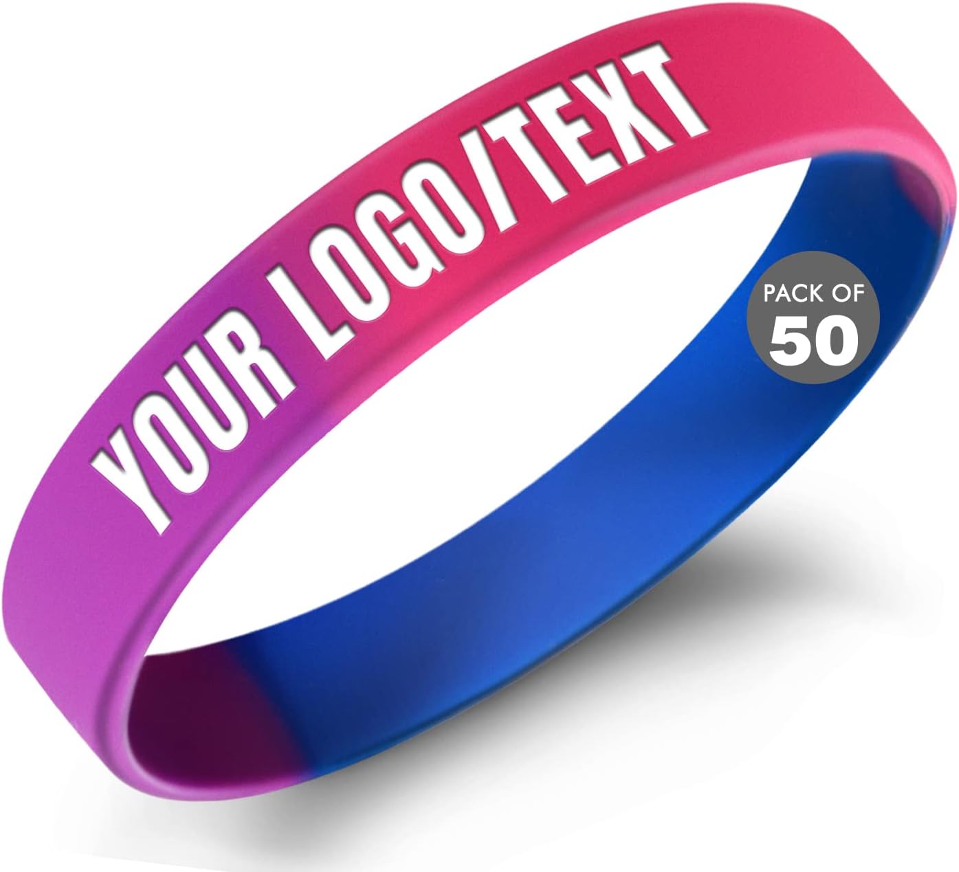 Specifications:High- Quality Material: 100% latex-free siliconeCircumference Sizes: 7.08"(190mm); 7.95"(202mm); 8.26"(210mm)Width Size:12mm Quantity: From 50 pieces or moreFeatures:Input Your Message-- Enter your own message to customize personalized wristbands, showing your slogan, logo, and contact info.Upload Your Logo-- Upload your logo and customize silicone bracelets customizable. Suitable for companies as gifts to customers and partners, to reflect the corporate culture. And also popular for charities, non-profits & local fundraisers.Ideal Gift -- These customized silicone wristbands are ideal gifts for friends, family, classmates, colleagues, partners, etc. You can write your message to give them heartfelt encouragement.Easy to Match- Our customizable wristbands are easy to match with necklaces, rings, coats, outfits, etc. You can also wear them alone or stack them on your wrist for a fashionable look.Notes:1. Prolonged exposure to sunlight may cause fading.2. Manual measurement, please allow slight errors in size.3. Due to the light and screen difference, the item's color may be slightly different from the pictures.
