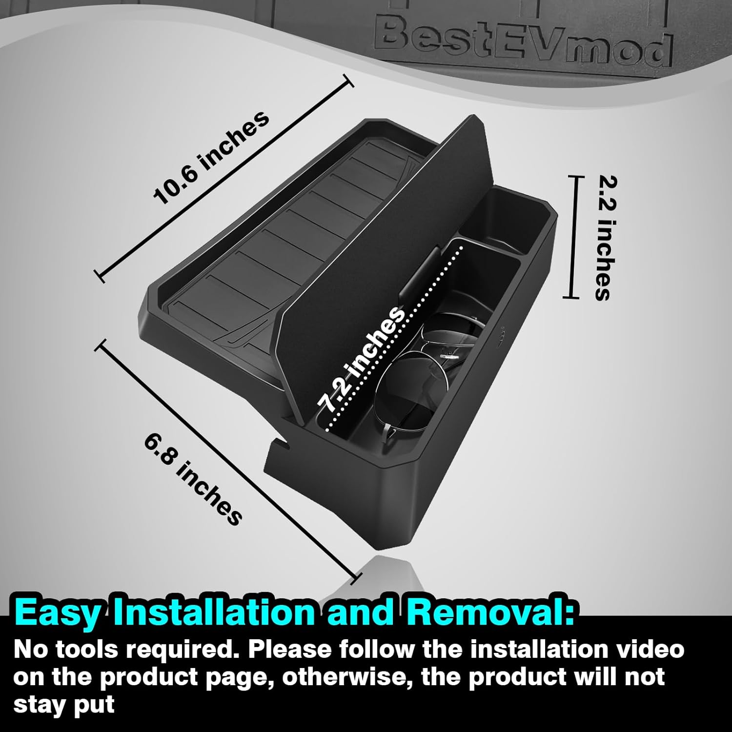 BestEvMod for 2026+ Model Y Juniper Refresh/2024+ Model 3 Highland Refresh Sunglasses Holder Screen Dash Console Organizer Accessories Dashboard Organizer Back Storage Box Tray with Lid Custom Fit Silicone