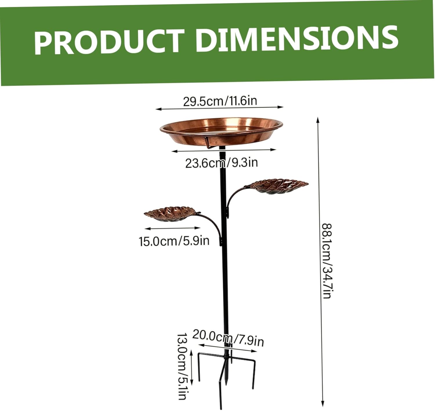 Description: Welcome birds and enhance your landscape with the elegant Copper Leaf Bird Bath. Designed to blend artistry with nature, this piece serves as both a functional water source for wildlife and a beautiful decorative accents. Crafted from metal with a warm antique copper finish, it withstands outdoor elements while maintaining its rustic charm. The unique leaf-shaped bowl is not only visually appealing but also provides a practical, shallow basin ideal for birds. The integrated ground stake allows for quick, secure installation in any soft ground, providing stability without the need for complex assembly. Easy to maintain and move as needed, this bird bath is a perfect addition to create a serene and inviting atmosphere in your garden, patio, or lawn. Features:. Bird Bath. -Color: Bronze. -Material: Iron. Note:Manual measurement, please allow slight errors on size.The colors may exist slight difference due to different screens. Package Including 1Pcs Bird Bath