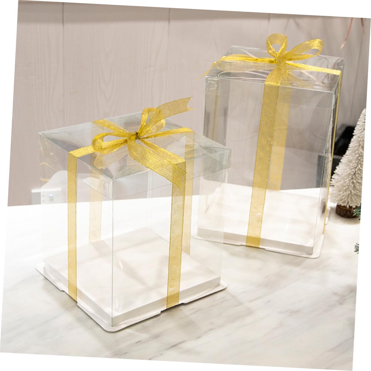 Package List 5 x cake packaging boxes Characteristics - Color: White ( color for ribbon). - Applicable: for 8 inch cake Cake Holder. - Size: 26.00X26.00X25.00cm/10.22X10.22X9.82inch. -Product Info:Birthday Cake Box - Material: Food grade white card, PET. - Made of , and , which will give you an enjoyable dessert experience. - Use packaging boxes to pack your food to make the display more upscale Cake Packing Case. - Can make your cake more delicious and look wonderful Food Packaging Boxes. - Suitable for various occasions such as Christmas, shower, bridal shower, wedding, birthday party and anniversary Transparent Cake Boxes. - Different sizes that you can choose, choose the most suitable one that can hold your cake just.Goods DescriptionTransparent Cake Boxes Do you want to pack your dessert with an box? Do you want a multifunctional cake box? , ! Our cake box must meet your needs, it's made of healthy material, and it's to use, and you can put cake or other dessert in it, which will to your