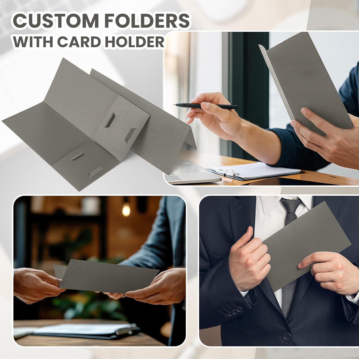 Features: Quality and durable materials: Our presentation folders are made of durable paper with a beautiful finish that is strong and durable Stylish design: These folders are efficiently die-cut so they won't damage your documents. Presenting a clean, professional look Specifications: Material: Paper Color: Grey Size: 4×9Inch Package includes: 50 Grey mini folders Notes: Manual measurement, please allow slight errors on size. The color may exist a slight difference due to different screen displays.
