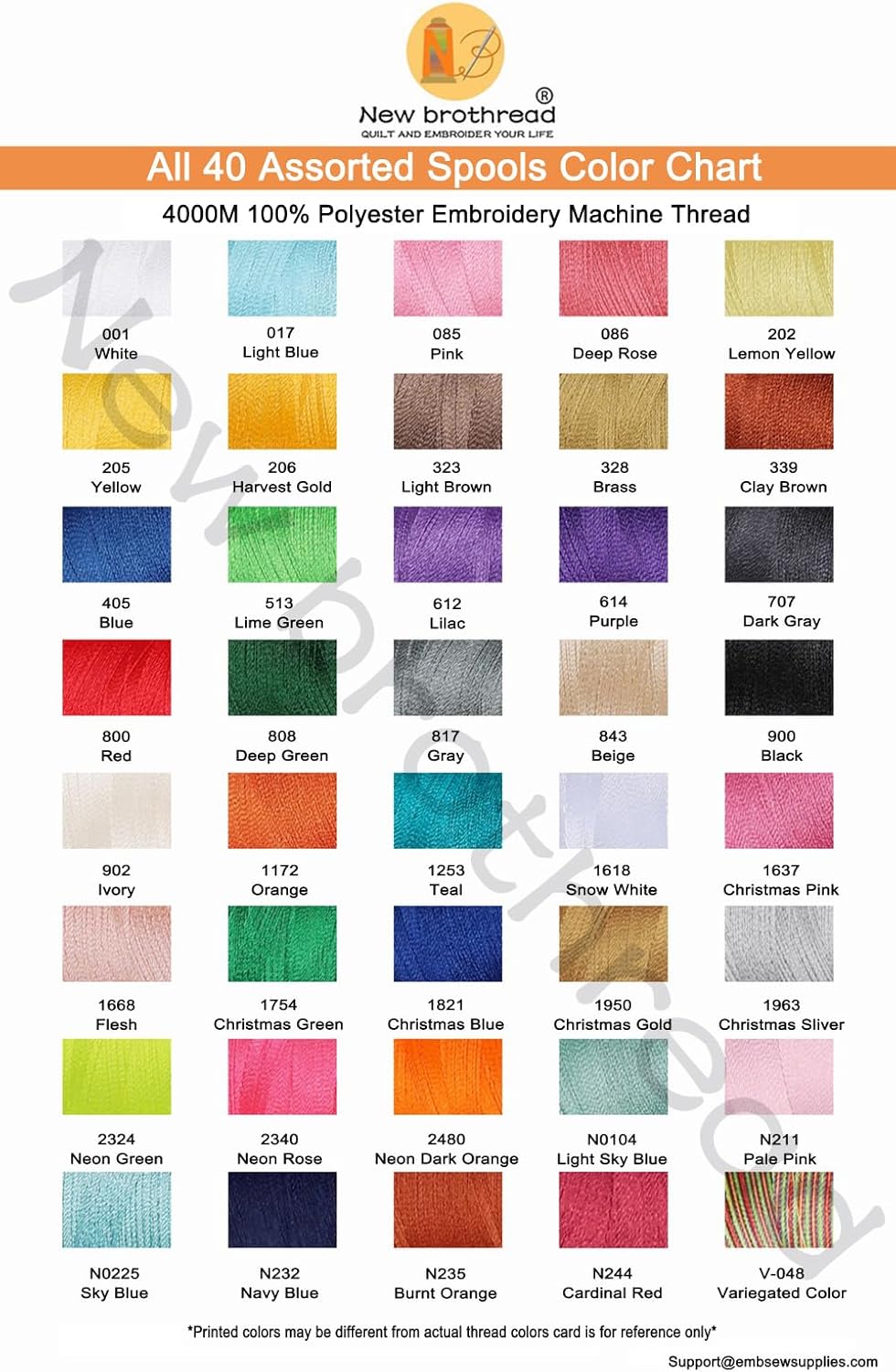 | Color | 40 Colors(42 Spools) |