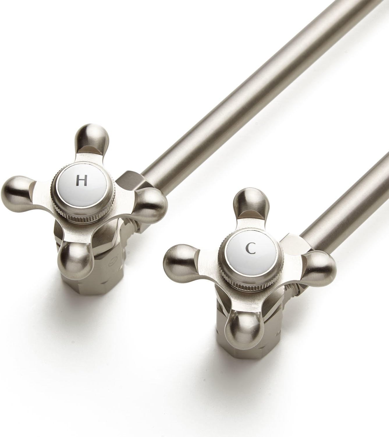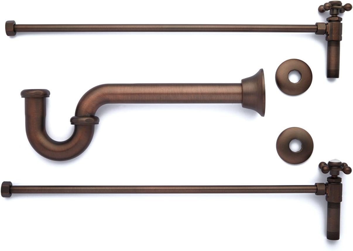 This sink trim kit comes with four ball cross handle angle stops, wall flanges, supply tubes and 1-1/4" P-Trap. Signature Hardware 900879 Features: Covered under Signature Hardware's 5 year limited Solid brass construction Includes angle stops, escutcheons, supply tubes and 1-1/4" P-trap Extra-long P-Trap measures 14-1/2" L 1/2"Iron Pipe Sizeangle stops for threaded pipe 2-1/2" diameter wall flanges 1-1/2" deep x 3" diameter P-trap wall flange 1/2" tubing x 20" long supply line Angle stops have cross handles with porcelain insets marked "H" and "C"