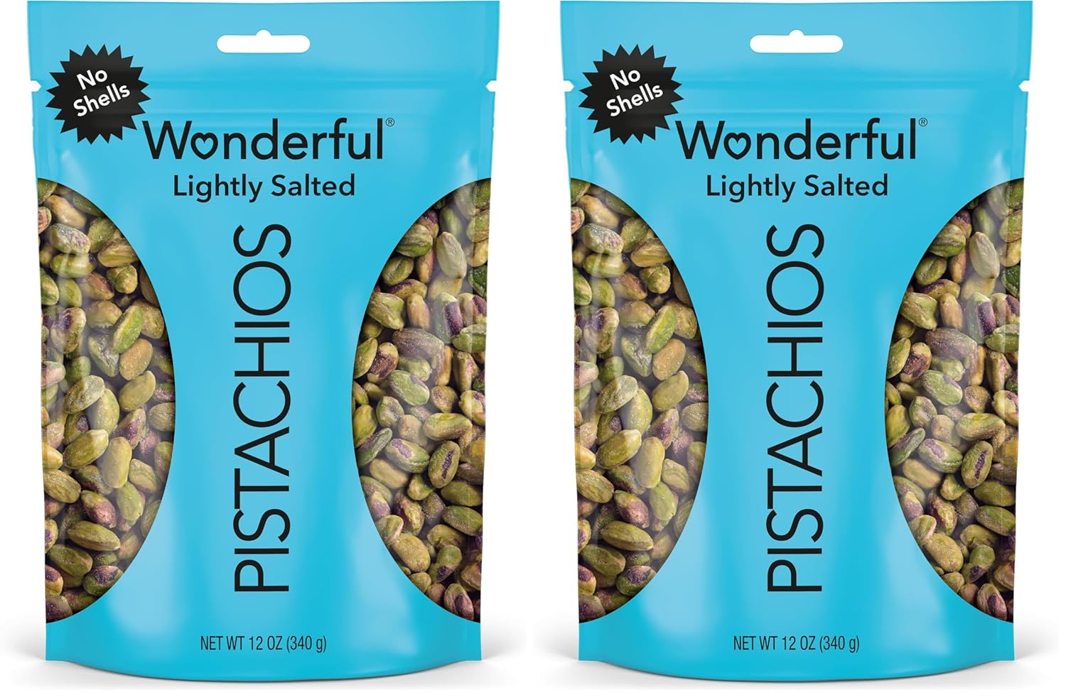 One 12 Ounce Resealable Bag of our Roasted & Salted No Shells Wonderful Pistachios. No Crackin'. All Snackin'. Wonderful Pistachios have literally come out of their shells. Same delicious taste, but with a little less work for you. Still great for snacking, they’re also a wonderful addition to your culinary creations. Wonderful Pistachios are a smart, healthy choice for folks around the world. Wonderful Pistachios grows all of its pistachios in California’s fertile San Joaquin Valley. The warm days and cool nights work in harmony with the region’s natural soils to create the perfect growing climate. We then carefully tend and harvest each pistachio using the latest in sustainable practices. Nutritious and healthy pistachios are great as part of an overall healthy diet. Pistachios are also a good source of plant-based protein. And in addition to tasting great, a single serving includes about 49 pistachios, enough to satisfy your snacking needs. Note: Contains Tree Nuts (pistachios)