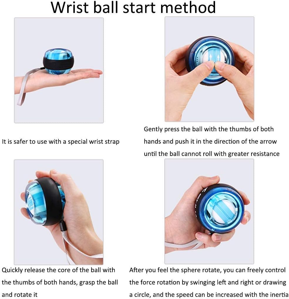 ?? What is the Wrist Ball Use for ? - It is interesting and good for hands, wrist, shoulder, forearms, biceps and good as warm-up sport before you do clim, golf, basketball etc - If you use computer or play the piano for long time, you can play this ball every day for several minutes which make you feel hand won't be so pain as well. - it is a very interesting toys to make your forearm sore and gets the blood going. ?? Product Details Product name: wrist ball Inner ball material: zinc alloy Shell material: polycarbonate, silicone ??The product contains 1: wrist ball*1, Wrist strap, Ball bag(not including other things) ??The product contains 2: wrist ball*1(With timer), Wrist strap, Ball bag(not including other things) ??Usage Instructions: 1. Wearing a special wrist strap is safer to use. 2. Lightly press the core with both thumbs and push it in the direction of the arrow until the core cannot roll forward. 3. Quickly release the core and then one palm grasp the ball body and rotate it. 4. After feeling the ball rotates, the wrist can freely control the ball in a circle. ?? Service: 1. If you need more styles, please click our other products to find the style you want. 2. If you have any questions before or after your purchase, please do not hesitate to contact us.