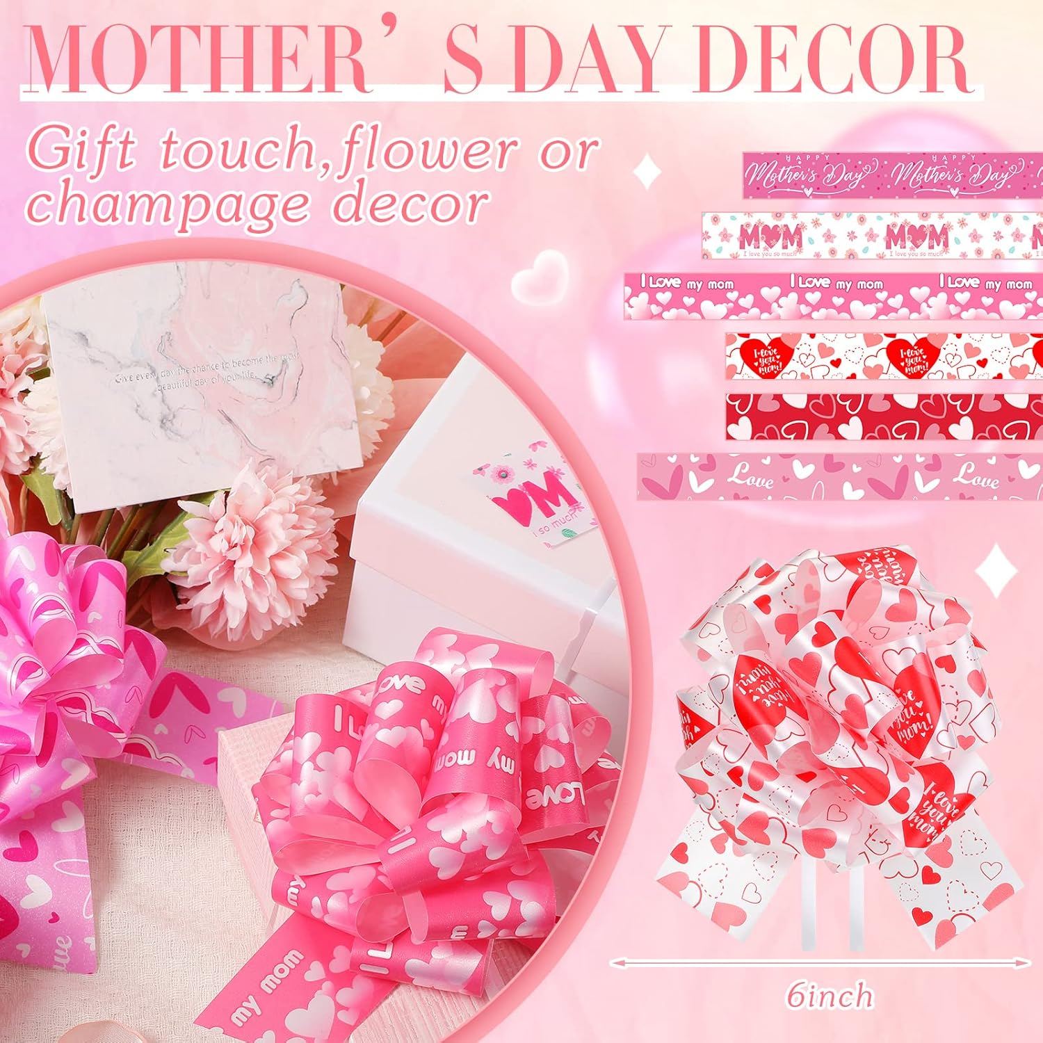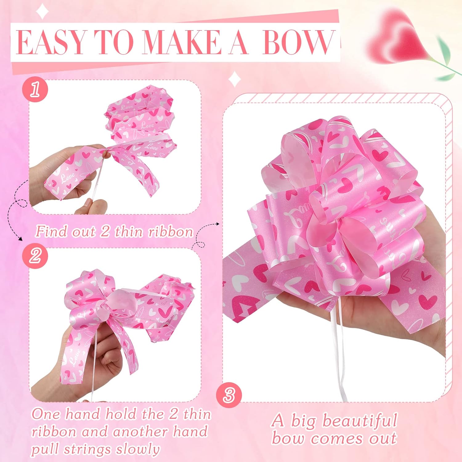 Features: Made of quality PP material, this Christmas present ribbon is hard to break or fade. You can use it to make a beautiful bow in a few seconds. Various styles and sufficient quantities, the unassembled pull out bows allow you to make romantic decorations together with your family, friends and lover. Specifications: Material: PPColor: as the picture shownSize: Unassembled gift ribbon: 47.2 x 2 inchesFinished bow: 6 inches in diameterPackage includes: 108 x Christmas wrapping gift bowsNotes: Manual measurement, please allow slight errors in size. The color may exist in slight differences due to different screens.